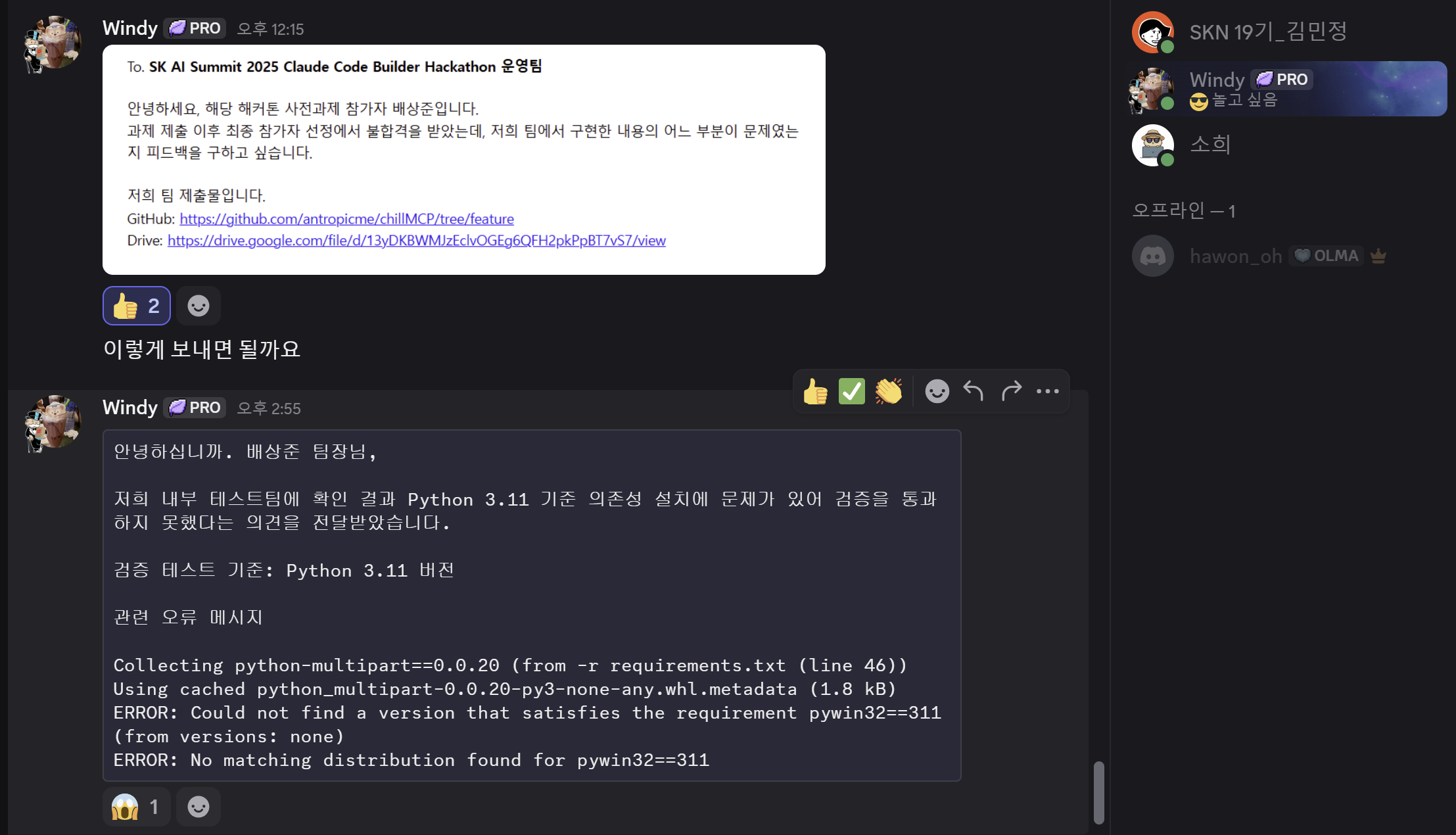 사실 이번 해커톤에 참여하는 대부분의 사람들은 main.py에 때려박는 코드를 작성하는 것을 보고 더 희망을 가졌던 것 같다.