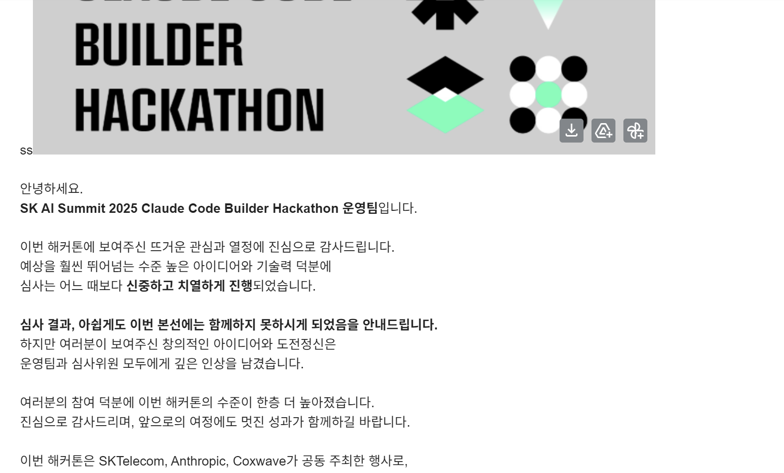 그래서 주최측에 메일을 보내서 불합격된 이유를 물어봤다.