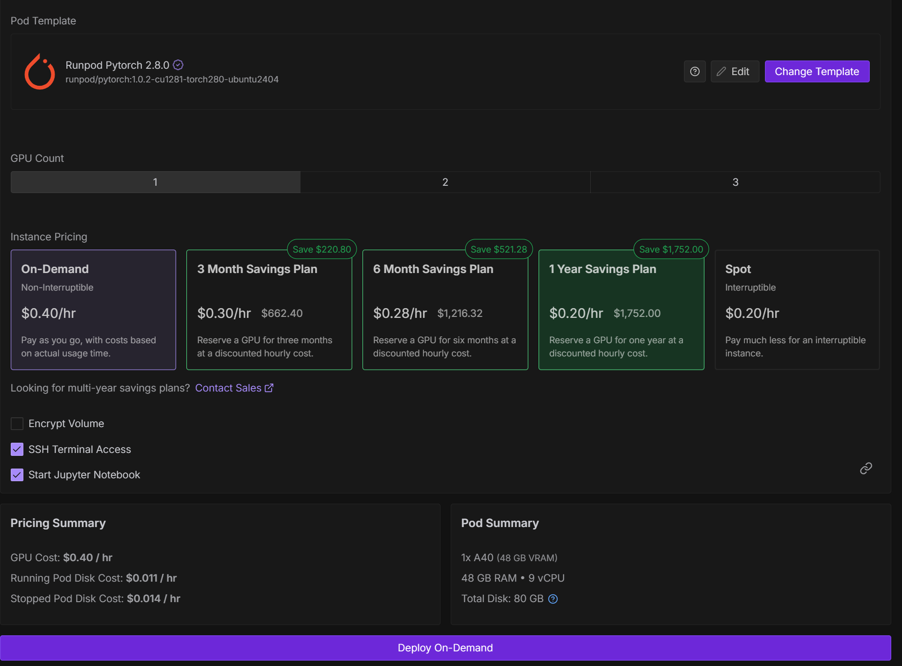 - Template: “Runpod Pytorch 2.8.0”